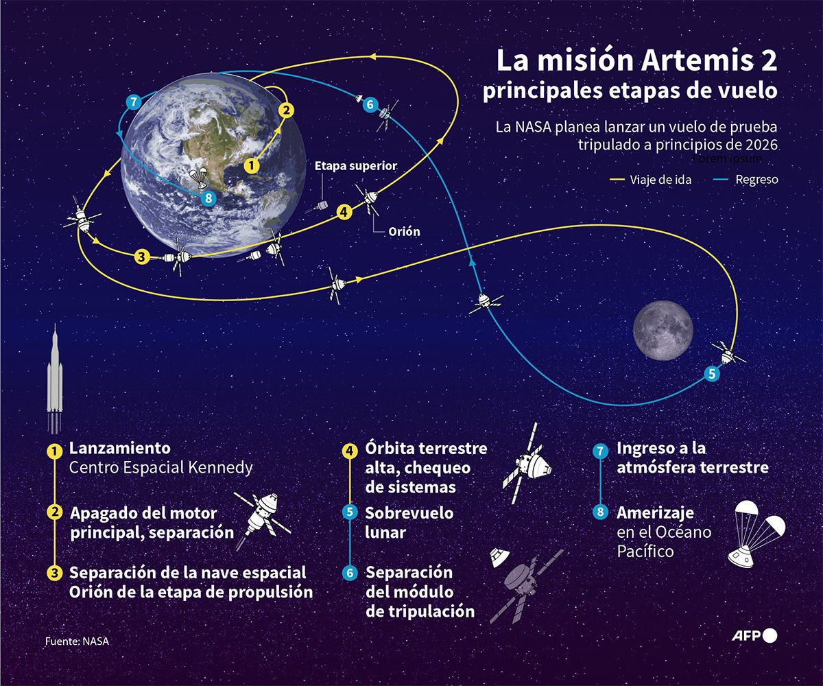Durante el sobrevuelo del satélite, “vamos a aprender enormemente sobre la nave espacial”, subrayó el domingo el director de la NASA, Jared Isaacman, en CNN. “Es lo que más nos interesa en términos de datos”, añadió, recordando que la cápsula Orion no había transportado hasta ahora a ningún ser humano.