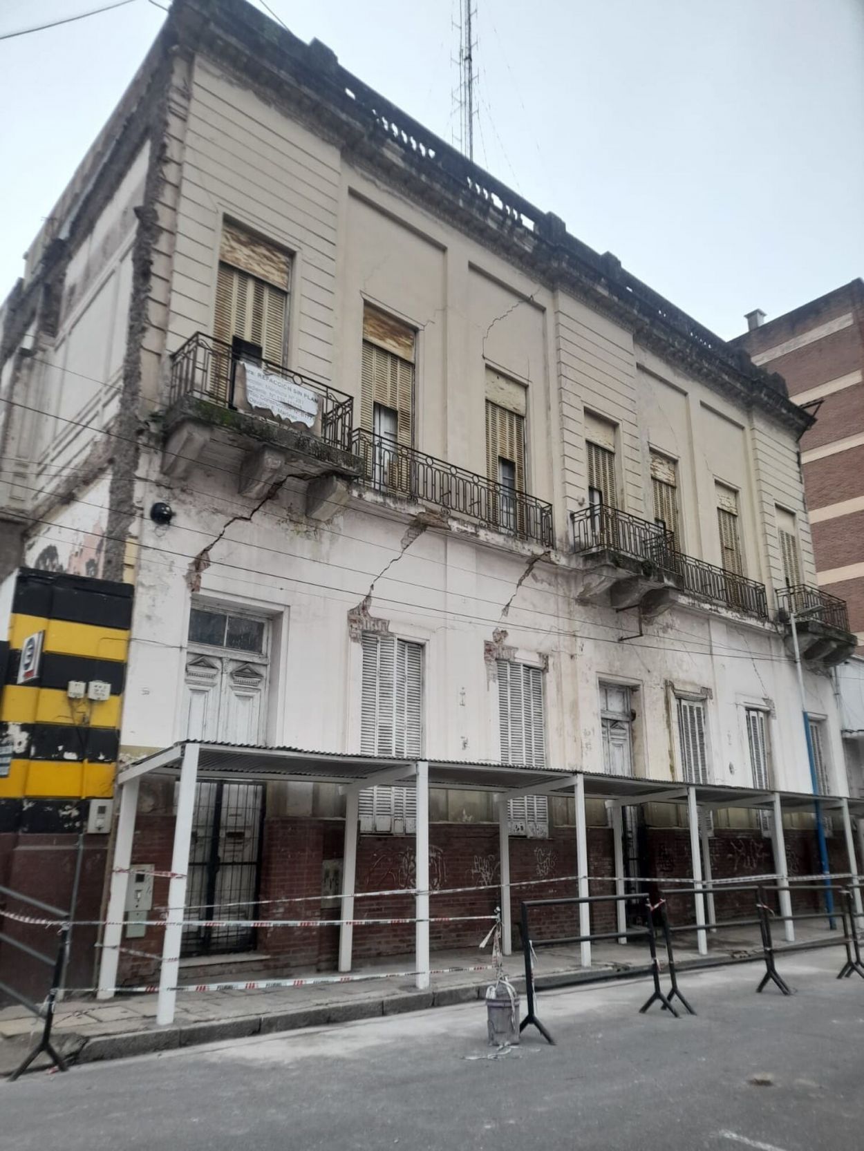 Durante esta última evaluación se constató que se trata de un edificio de dos pisos, que data de aproximadamente 70 años (padrón municipal N°4.743), y que presenta fisuras y grietas a 45° con respecto de la horizontal en la fachada.