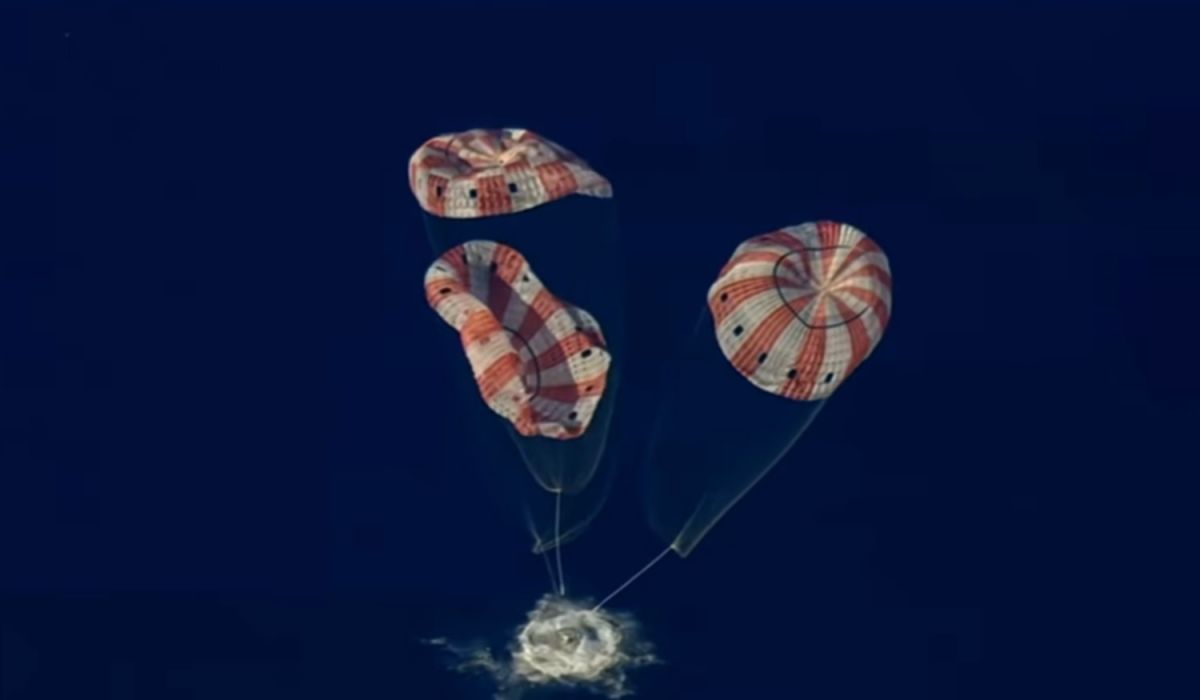 Los astronautas ya dieron el "ok" de que se encuentran bien dentro de la cápsula, mientras  con los paracaídas.