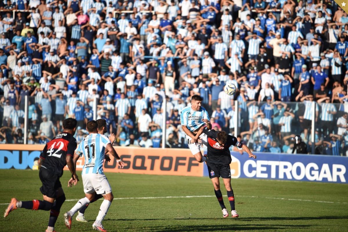 EN SOLEDAD. Leandro Díaz se eleva sobre su marca para intentar impactar la pelota de cabeza. El delantero fue la única referencia ofensiva de la noche. DIEGO ARÁOZ / LA GACETA