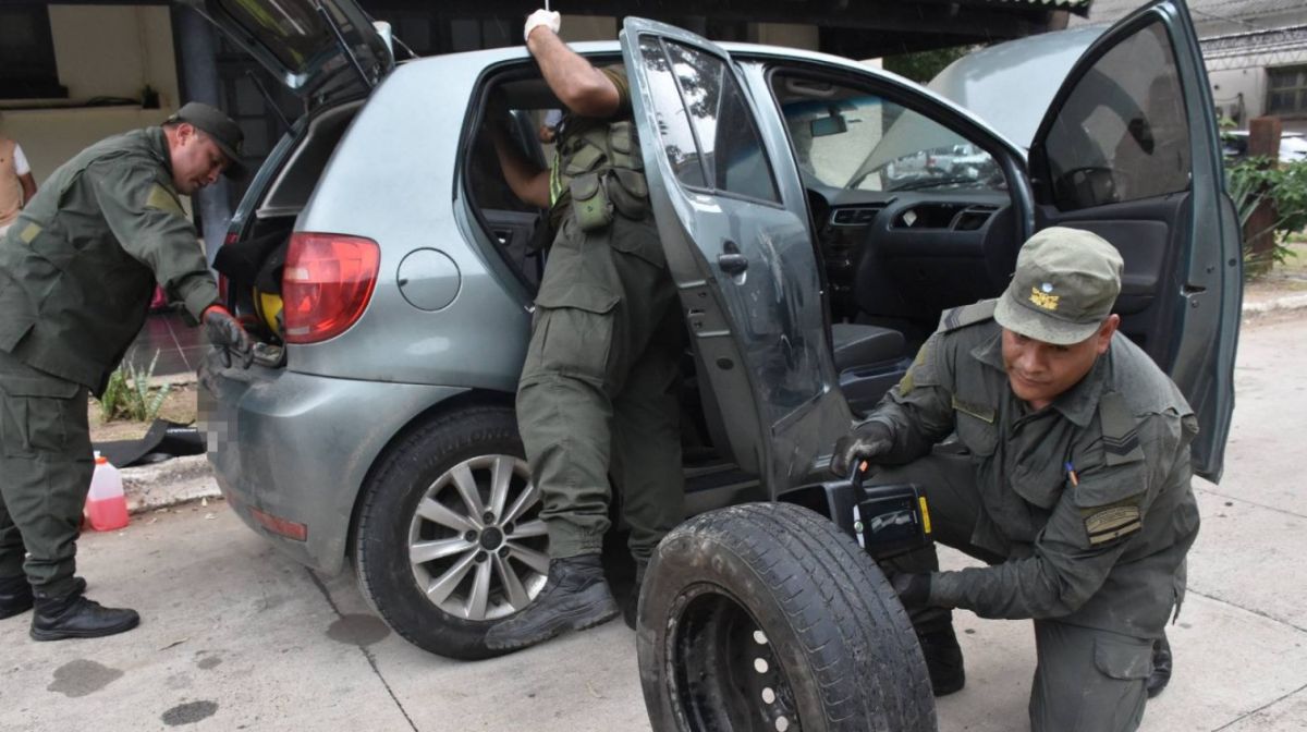 Ante esa situación, los uniformados utilizaron un escáner móvil que permitió detectar la existencia de cuerpos extraños en distintos sectores del vehículo. De inmediato, avanzaron con una requisa minuciosa que derivó en la extracción de 10 paquetes rectangulares ocultos en el ducto de ventilación del aire acondicionado, en la rueda de auxilio y en el asiento trasero.