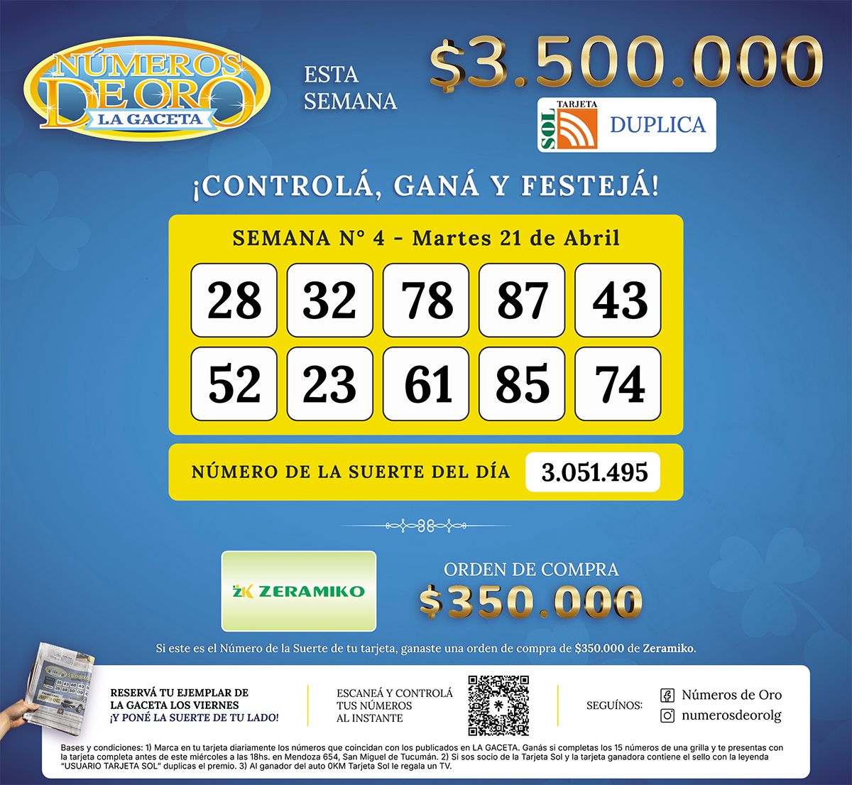 Los Números de Oro de LA GACETA del 21 de abril de 2026