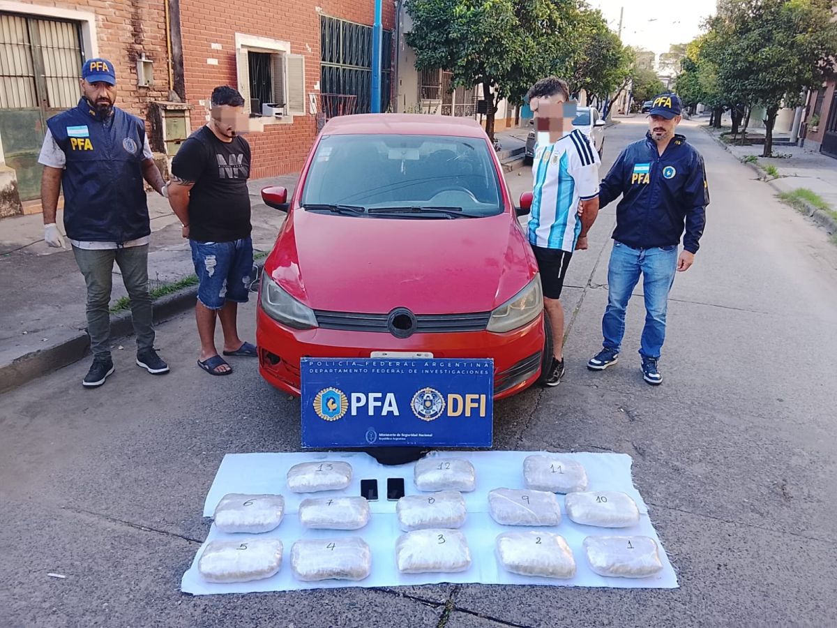 Efectivos de la Policía Federal Argentina (PFA) detuvieron a dos hombres que transportaban más de 13 kilos de marihuana en un vehículo, en la capital.
