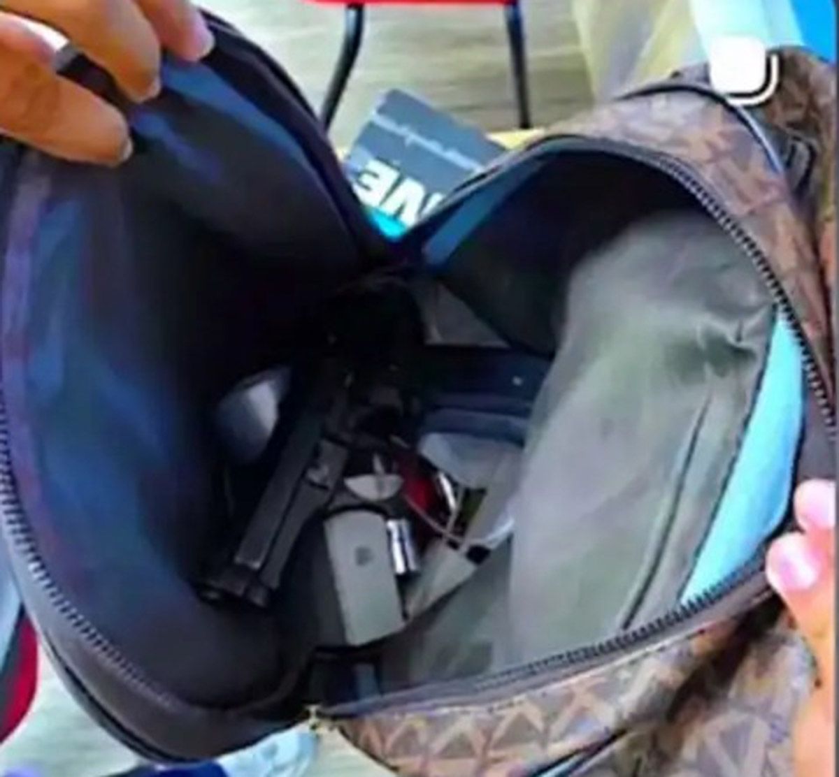 AMENAZA. El alumno posteó en su cuenta de Instagram una foto de un arma de fuego dentro de una mochila.