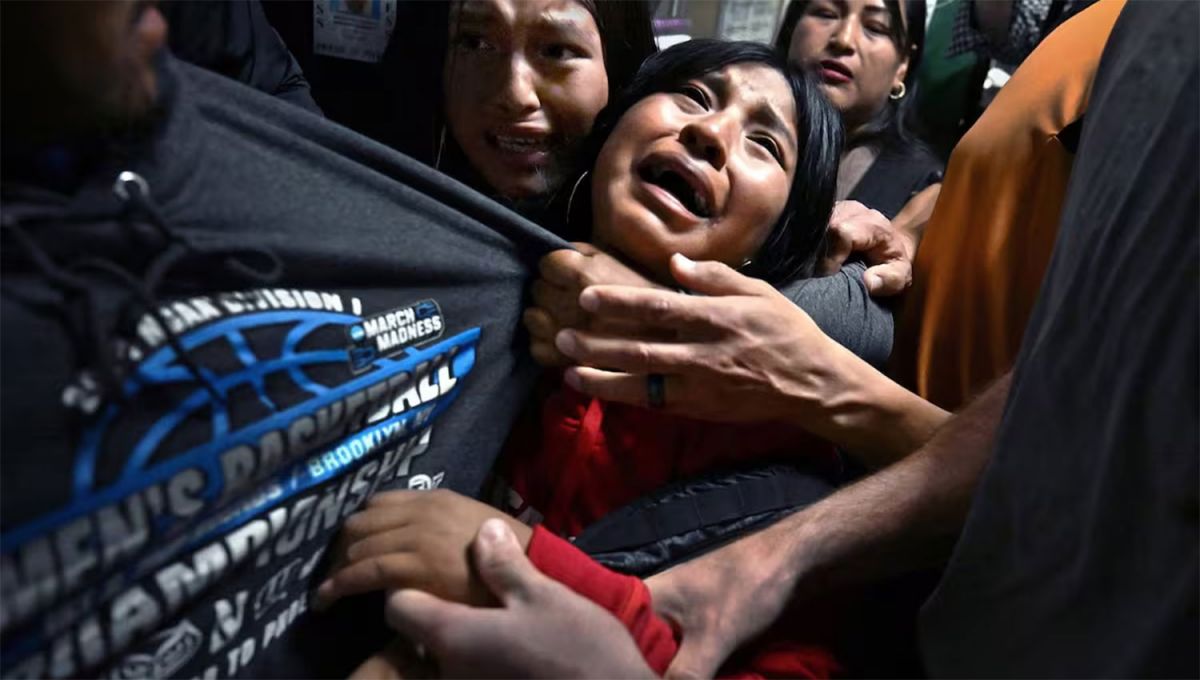 La imagen, titulada “Separados por ICE”, documenta el momento en que una familia de origen ecuatoriano es dividida por agentes del ICE en el interior de un edificio federal en Nueva York. La escena tiene como protagonista a Luis, un migrante residente en el Bronx, quien es detenido tras asistir a una audiencia judicial el 26 de agosto de 2025. En cuestión de segundos, el procedimiento deriva en una separación abrupta de su esposa, Cocha, y de sus hijos, en un episodio que sintetiza el impacto humano de las políticas migratorias.