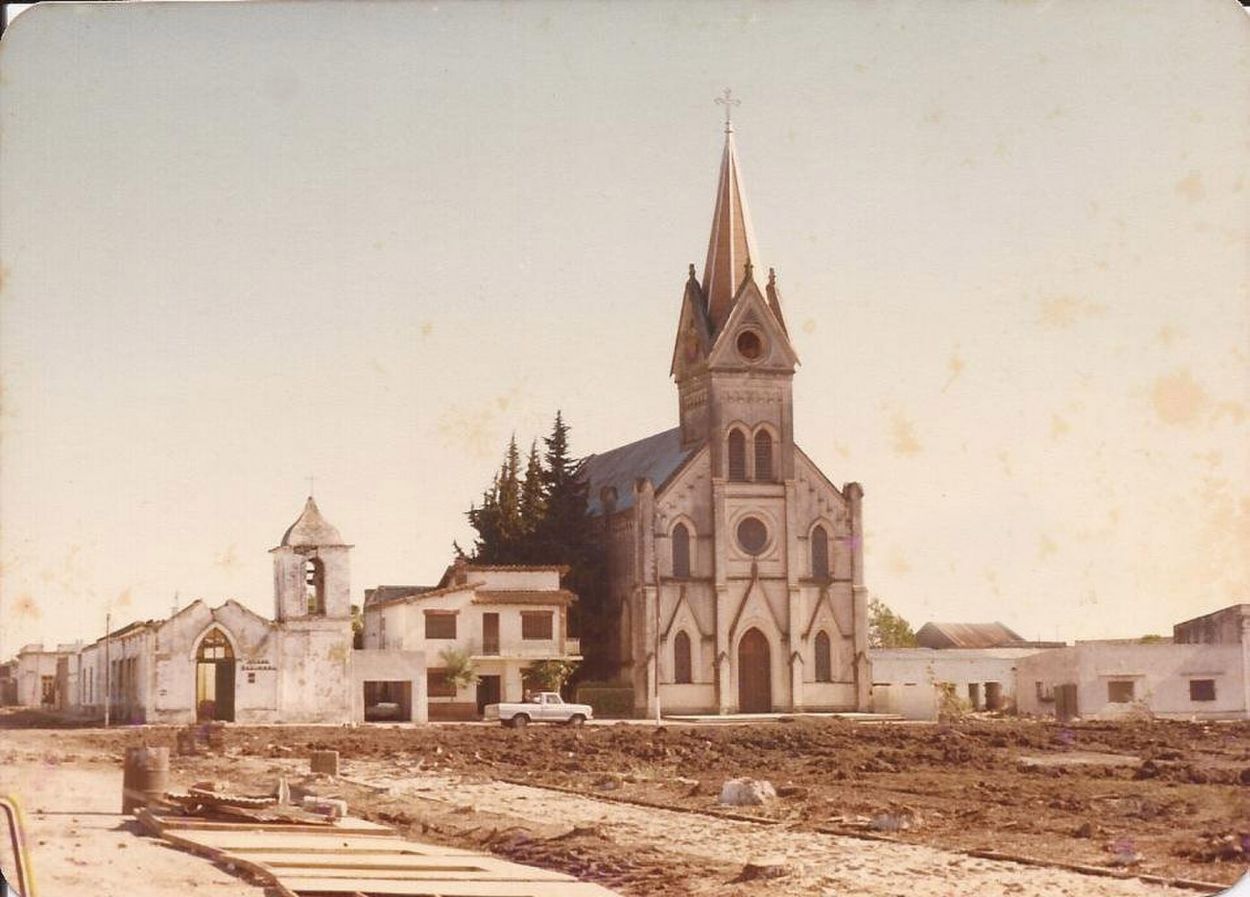 CERCA DEL FINAL. La iglesia y otros edificios céntricos de la ciudad de más de 120 años, a poco del avance de las aguas y ya sin sus pobladores.