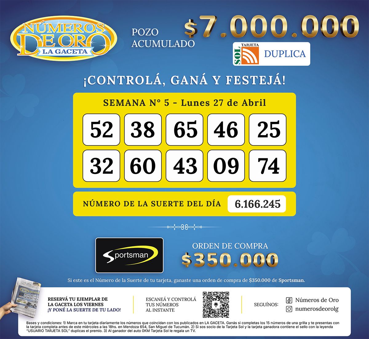 Los Números de Oro de LA GACETA del 27 de abril de 2026