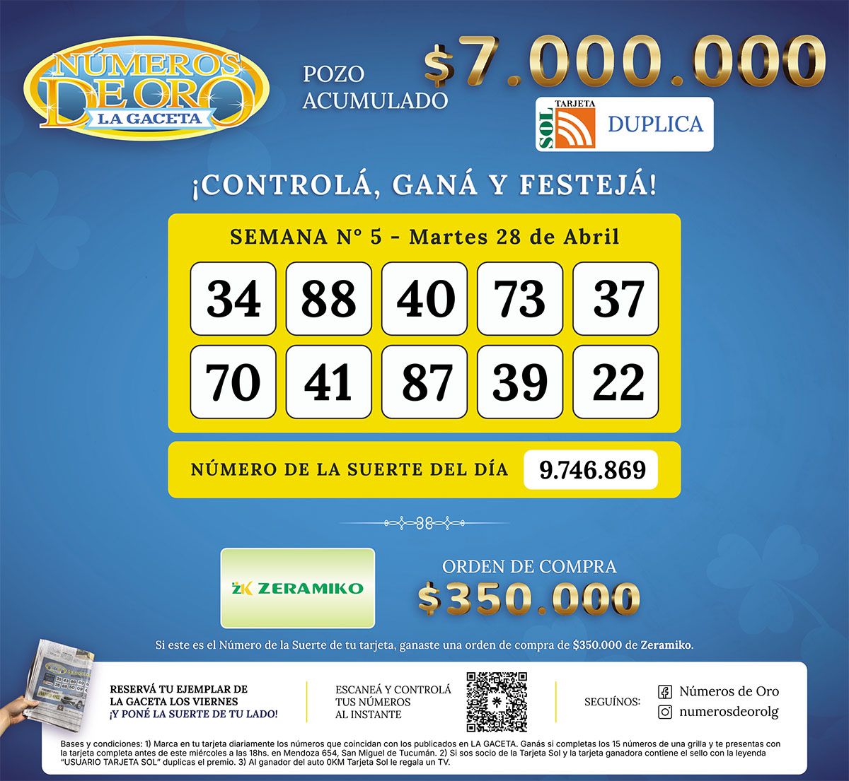 Los Números de Oro de LA GACETA del 28 de abril de 2026