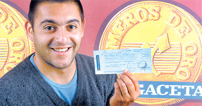 Miguel Arturo Acosta, de 27 años, ya tiene en sus manos el cheque por $ 5.000 que ganó con Los Números de Oro. Acosta, el único que se llevó el premio mayor, maneja un auto rural compartido. Con el dinero que ganó, piensa pagar deudas y arreglar su casa.