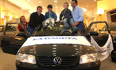 FELICIDAD. La familia Díaz se subió al VW Gol, que ganó ayer a la tarde, y festejó en la concesionaria. LA GACETA / ANTONIO FERRONI