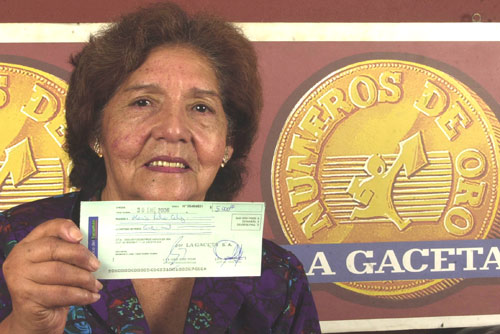 La lectora María Lilia Céliz, ama de casa de Villa 9 de Julio, cobró ayer los $ 5.000 del premio semanal de los Números de Oro de LA GACETA. "Al enterarme de que había ganado, sentí una gran satisfacción. Me parecía un sueño", dijo emocionada. Comentó que el dinero le llega justo cuando lo necesita, ya que ayudará a su hijo que está enfermo.