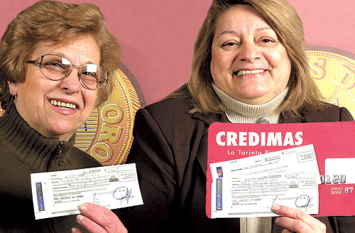 Las primeras ganadoras del nuevo ciclo de Números de Oro de LA GACETA cobraron ayer. Trinidad Hernández de Arisio (de anteojos) se llevó $ 2.500, y María Margarita Alvarez, que es socia Credimás, duplicó su parte y cobró $ 5.000. Mientras tanto, los lectores tienen tiempo hasta mañana para participar del sorteo del auto 0 km.
