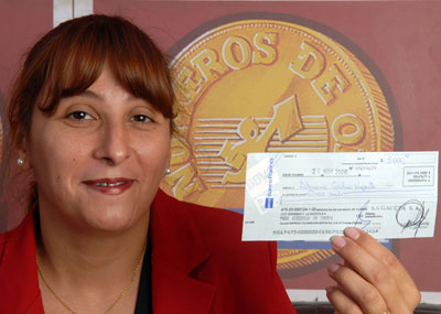 Adriana Cecilia Ugarte se fue feliz con su cheque por $ 10.000 que ganó con Los Números de Oro de LA GACETA. La afortunada vecina de La Ciudadela, de 34 años, duplicó su premio porque es socia de Credimás. Adriana, madre de dos hijos, dijo que aprovechará el dinero para pagar varias deudas que tiene su familia.
