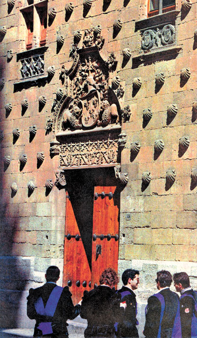 ESTUDIANTES FRENTE AL PORTAL DE LA UNIVERSIDAD DE SALAMANCA.