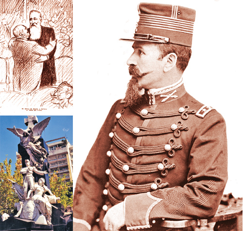 PABLO RICCHERI (der), MINISTRO DE GUERRA. JOSE S. DANTAS, DE TRAJE OSCURO, EN UN DIBUJO DE COLUMBA. TUMBA LUIS MARIA CAMPOS EN LA RECOLETA.