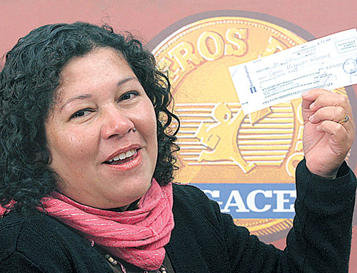 Sandra Alejandra Albornoz cobró ayer el cheque de $ 12.000 que le correspondió por haber sido la única ganadora del pozo acumulado de los Números de Oro de LA GACETA. La afortunada lectora, que es ama de casa de Alderetes, dijo que utilizará el dinero para pagar varias deudas y que les comprará algunas cosas para sus hijos.