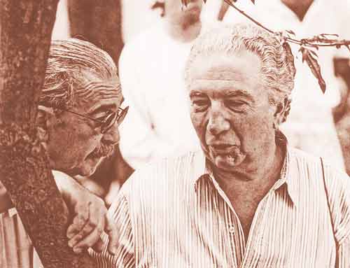 CODO A CODO. Juan Gelman (izquierda) junto al autor de esta nota, en el Festival Internacional de Poesía de Medellín, en 1994.