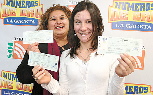 Nora Gutiérrez, de Tafí Viejo, y Laura Elisa Pondal, de Yerba Buena, cobraron ayer el pozo acumulado de los Números de Oro de LA GACETA que habían ganado la semana pasada. Gutiérrez se llevó $ 6.000, pero Pondal duplicó el premio porque es socia de Tarjeta Sol y recibió $ 12.000.