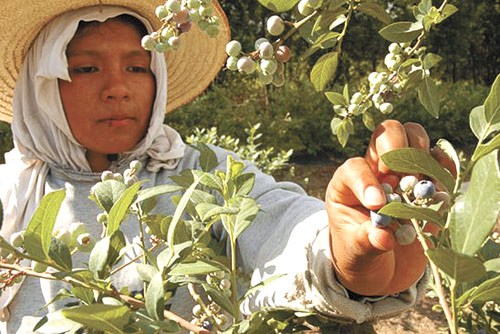 PROTECCION. La cosecha de arándanos exige trabajar con cuidado.