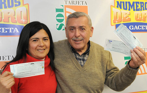 Dos lectores cobraron ayer el premio que ganaron con Los Números de Oro. Irma Angela Escobar, de 37 años, y Carlos Lezana, de 68, se repartieron el pozo acumulado de$ 24.000. Escobar se llevó $ 12.000 y Lezana, por ser usuario de la Tarjeta Sol, duplicó su parte.