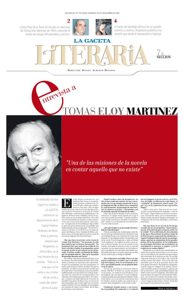 - Hay una frase recurrente en los textos de Tomás Eloy Martínez: "Nos pasamos la vida buscando lo que ya hemos encontrado". En Purgatorio hay una variante invertida de esa frase referida a Emilia, la protagonista, quien no puede perder lo que todavía no ha encontrado. Esa frase remite a la historia de Simón, que ha quedado abierta. ¿Hay en la Argentina demasiadas historias sin cerrar?
