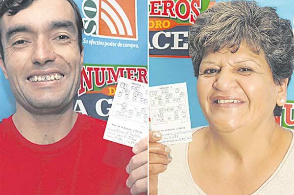 Mario Roberto Ardiles, de Juan B. Alberdi, y Josefina Irene Córdoba, de esta capital, compartirán el premio de $ 12.000 de los Números de Oro de LA GACETA. Ninguno de ellos es usuario de Tarjeta Sol del Banco Santiago del Estero, de manera que no duplicarán la recompensa. Cada uno cobrará $ 6.000. Ardiles, que vive con su mamá y con sus hermanos, está desocupado, y dijo que empleará parte del dinero para viajar a Catamarca y cumplir una promesa hecha a la Virgen del Valle. Córdoba, que es docente y tiene dos hijos ya grandes, comentó que comenzará a construir su casa en un terreno que posee, ya que actualmente alquila una vivienda.