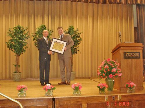 El actual director técnico de la Estación Experimental Agroindustrial Obispo Columbres de Tucumán (Eeaoc), doctor Daniel L. Ploper, fue galardonado como "Egresado Distinguido en Agricultura 2009", distinción que le fue entregada por la Universidad de Purdue, en EEUU, donde cursó durante cinco años su carrera de postgrado. La distinción fue entregada durante en acto que se realizó el 6 del corriente. El experto de la Eeaoc recibió su distinción de manos del decano de Agricultura de la Universidad, Dr. Jay T. Akridge (ver foto adjunta). Ploper egresó del Colegio de Agricultura de la Universidad de Purdue (Indiana), como Master of Science en Agricultura y Doctor en Filosofía, habiendo cursado entre 1982 y 1987.