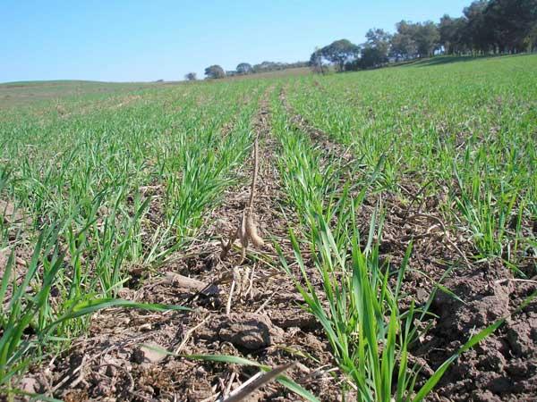 ESTRES HIDRICO. Las plantas de trigo tienen un menor desarrollo al esperado, fuertemente afectadas por el bajo nivel de humedad del subsuelo.