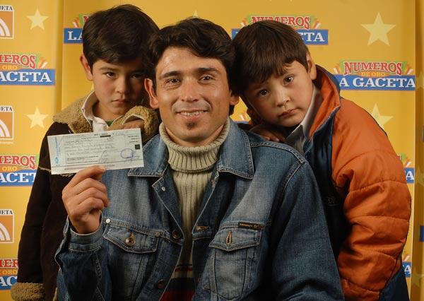 RAMON MARCELO NAVARRO. El afortunado vino a retirar su premio con dos de sus tres hijos. LA GACETA / OSCAR FERRONATOGERARDO MARTIN BELMONTE. El ganador dijo que usará el dinero para irse de viaje con su suegro.