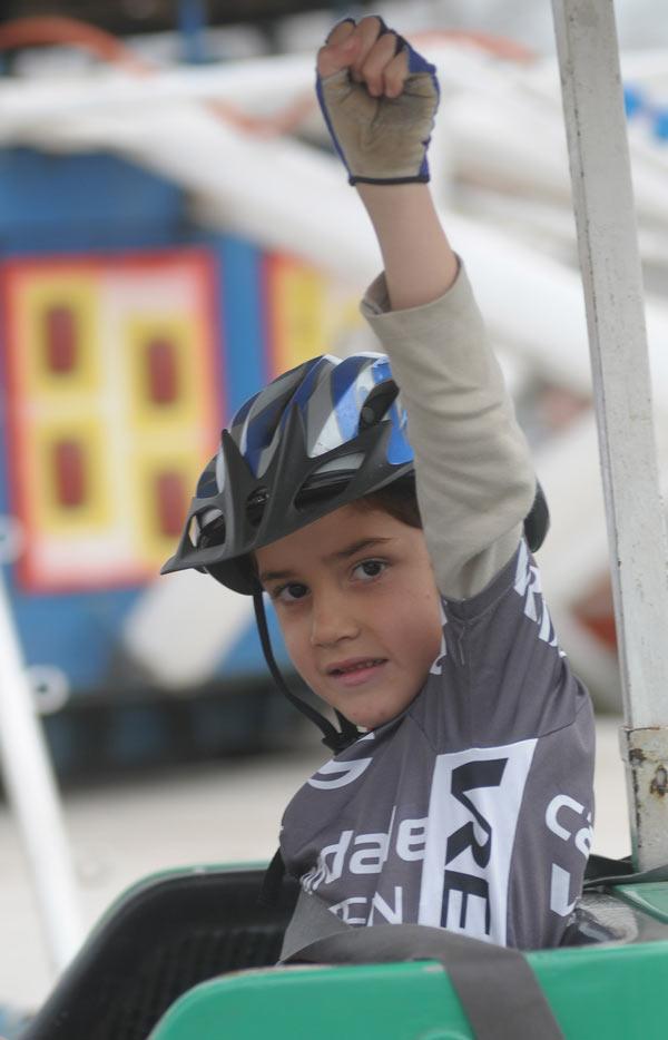 Luciano se divierte sobre las dos ruedas y también con la redonda