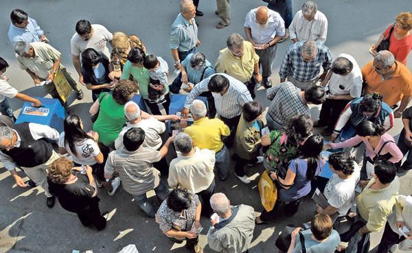 FRENTE A LA GACETA. Fue incesante la afluencia de lectores a las urnas ubicadas en Mendoza al 600. LA GACETA / JOSE NUNO
