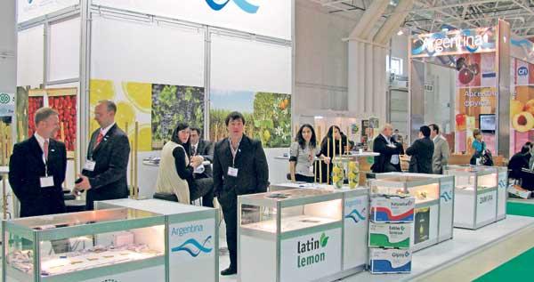 PRESENCIA TUCUMANA. Varias empresas citrícolas exhibieron sus productos en el pabellón argentino, en Moscú.