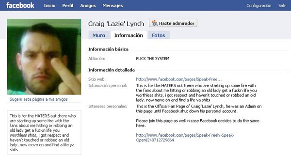 Craig “Lazie” Lynch, de 28 años, se convirtió en un personaje de culto en Facebook, donde tenía varias decenas de miles de amigos. Durante la noche del martes fue atrapado en la ciudad de Kent, al sudeste de Londres, y ahora deberá comparecer ante el juez.