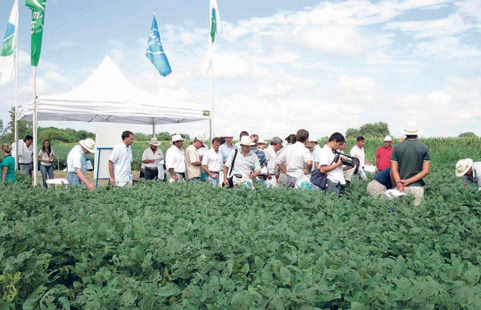 ENSAYOS. Técnicos y productores recorren las plantaciones en Cruz Alta. GENTILEZA BAYER