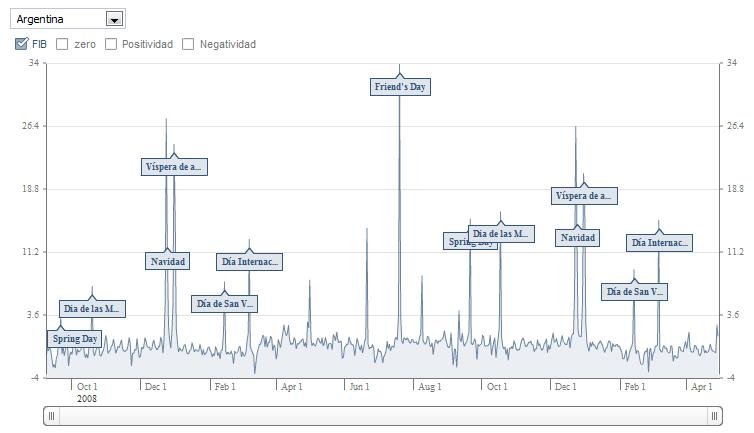 Se puede objetar que las cifras de la aplicación son relativas, ya que se sacan conclusiones basándose sólo en lo que vemos en el gráfico, podríamos suponer que Argentina es un país descontento en el Día de la Primavera, cuando en realidad es una de las fechas más esperadas por los estudiantes.