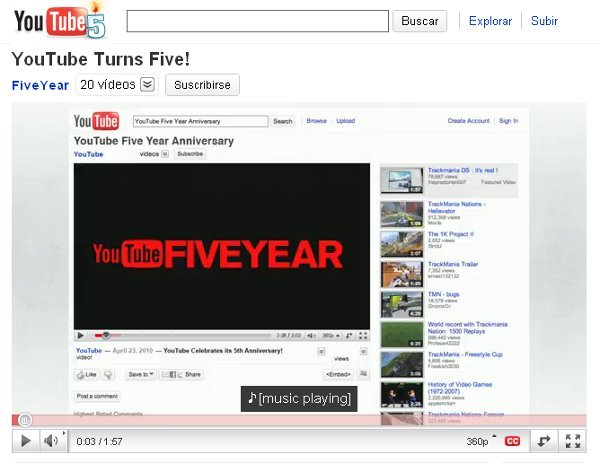 Sin dudas ninguno de sus creadores, Chad Hurley, Steve Chen y Jawed Karim, tres ex empleados de PayPal, habría pensado que YouTube iba revolucionar internet, pero lo hizo. Hoy el portal de videos más grande del mundo cumple cinco años y lo celebra con un "doodle" en su logo, un video que recorre buena parte de su historia y con un canal propio, para darle más rienda suelta a la celebración. LA GACETA ©