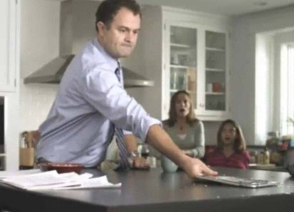 La publicidad muestra a un padre de familia que se encuentra leyendo la edición digital del diario. Cada tanto, su mirada se desvía hacia el vuelo de una mosca. Cuando esta se posa sobre la mesa, el hombre utiliza el iPad para aplastarla. La tableta se rompe en mil pedazos mientras la esposa y los hijos la miran atónitos.
