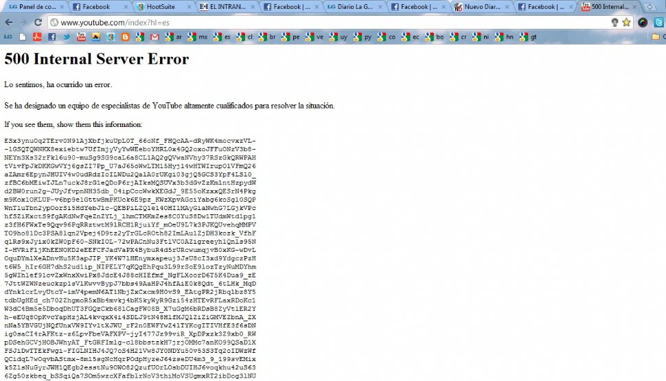 INUTILIZABLE. El portal de videos es víctima de un error que no permite ingresar a los usuarios. FOTO TOMADA DE YOUTUBE.COM