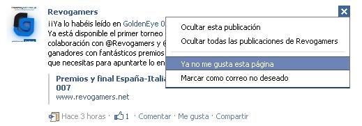 Si bien en algunos perfiles puede no estar habilitado, sólo es necesario apretar la "X", que aparece junto a la actualización de las páginas de fans, y elegir la opción "ya no me gusta esta página".