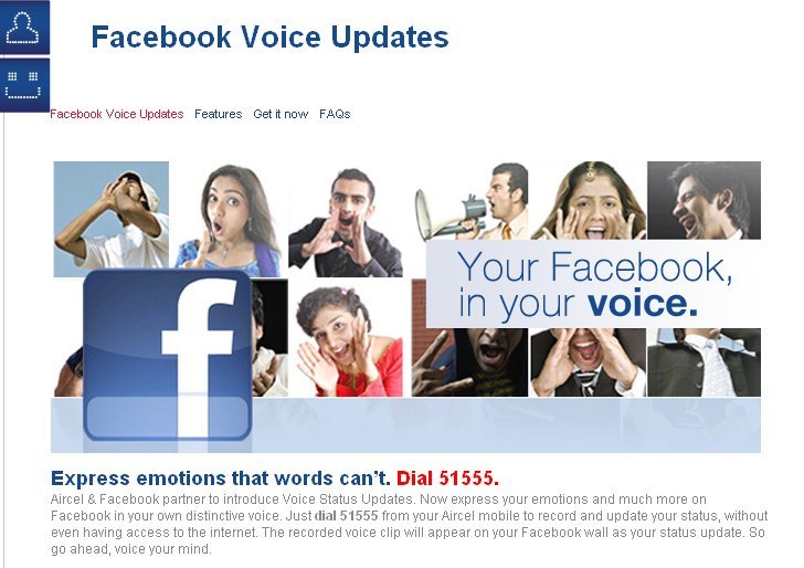 NEW YORK, Estados Unidos.- Las redes sociales ocupan cada vez tiempo en la vida de los usuarios. Para solucionarlo, Facebook India habilitó un servicio para que los internautas puedan actualizar sus estados mediante una grabación de voz.