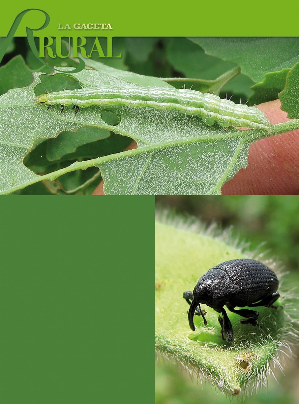 La "oruga medidora" está atacando con fuerza los campos sojeros ubicados en distintas zonas productivas.El "picudo negro de la vaina" termina dañando el grano de soja, afectando la calidad del grano y el rendimiento.