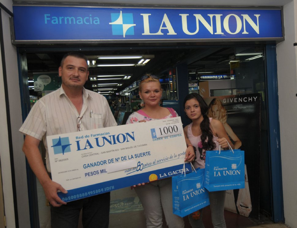 Gabriela del Valle Palomares ganó una orden compras por valor de $ 1.000 de Farmacias La Unión, con los Números de la Suerte del entretenimiento de los Números de Oro de LA GACETA. "Soy madre de una nena de 13 años y de un varoncito de dos años. Los abuelos también viven conmigo y pude comprarles medicamentos como una manera de ayudarlos. Los empleados de la farmacia me atendieron muy bien y pude elegir otros artículos tranquilamente. Así es que, además, he canjeado la orden por leche, pañales y artículos de perfumería. Mi hija eligió una linda fragancia... En fin, gané un hermoso premio y pienso seguir participando del entretenimiento, al que sigo desde que comenzó", expresó agradecida de la buena suerte.