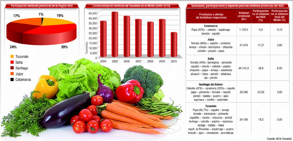 Dentro del NOA, la provincia que más se destacó en su contribución tanto en volumen como en diversidad de hortalizas fue Salta (situación que se mantiene desde hace varios años, con un 39% del total de la región, que fue superior al del año anterior cuyo porcentaje era del 33,7%.