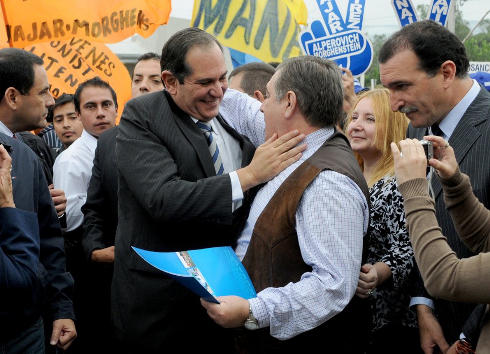 Las banderas naranja, con las inscripciones de la Red Solidaria Talitense y del Movimiento Juvenil Talitense, eran del intendente Luis Morghenstein y de su esposa, la legisladora Adriana Najar, quienes aparecían sonriendo en un afiche de otra época: Alperovich aún lucía su bigote.