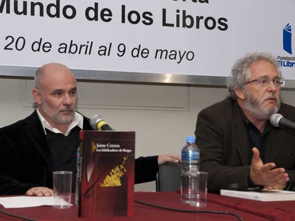 EN LA FERIA DEL LIBRO DE BUENOS AIRES. Jaime Correas (izquierda), acompañado por Héctor Abad Facioline, durante la presentación de su obra.