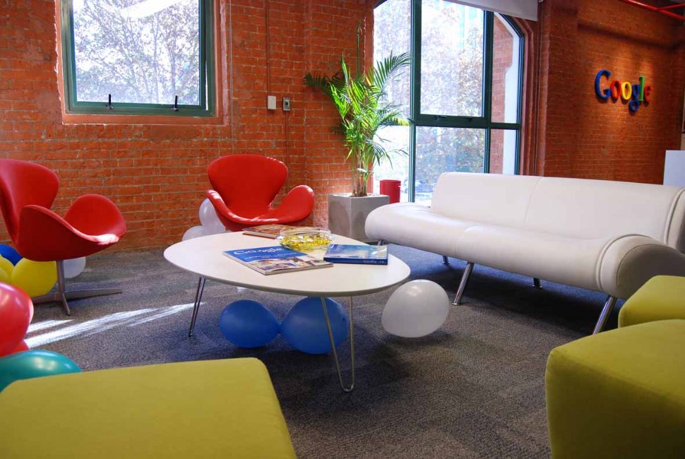 Dentro del edificio, ubicado en Puerto Madero, "los google" cuentan con salas de juego, cocina, pufs, paredes en blanco para rayonear con crayones de colores, televisores y pantallas en todos los rincones.