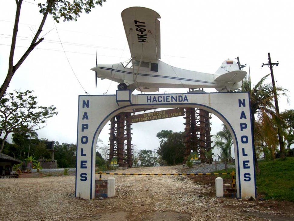 OTROS TIEMPOS. Entrada principal a la hacienda "Nápoles" con el avión en el que Pablo Escobar aseguraba que hizo su primer embarque.