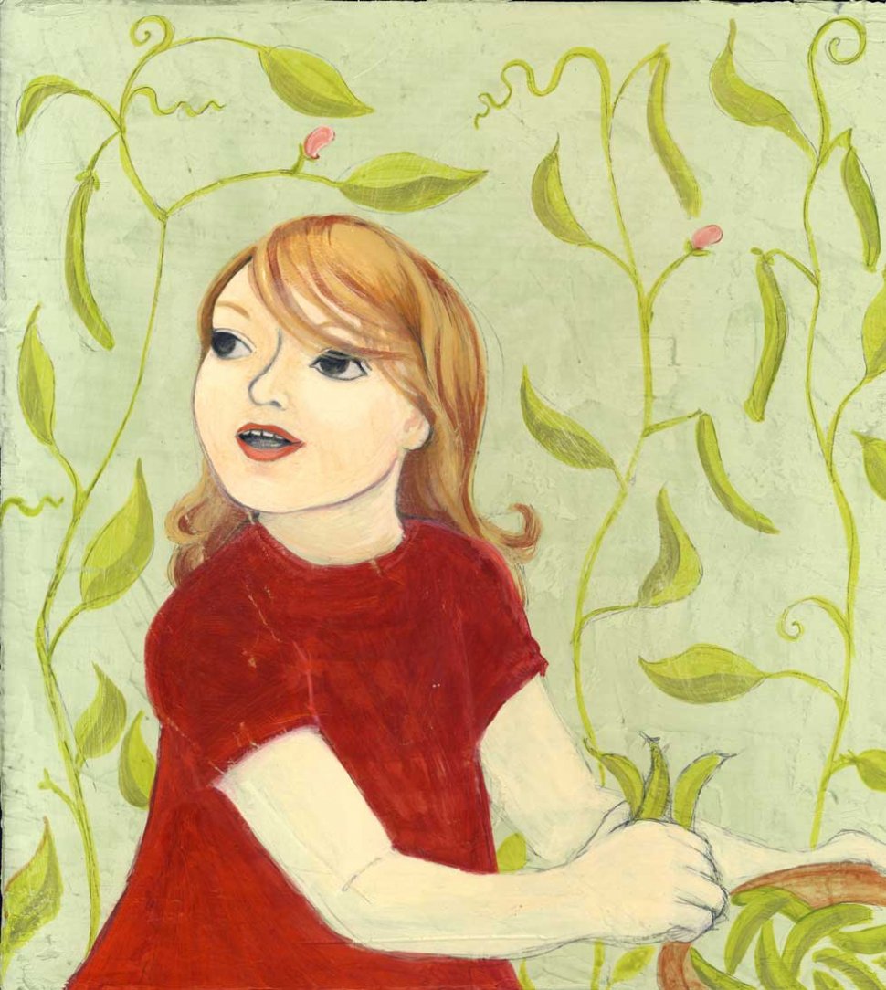 REPRESENTACIÓN DE LA INFANCIA. Little Bean (pequeños granos), una ilustración de pintura acrílica de la autora Eva Lena Rehnmark.