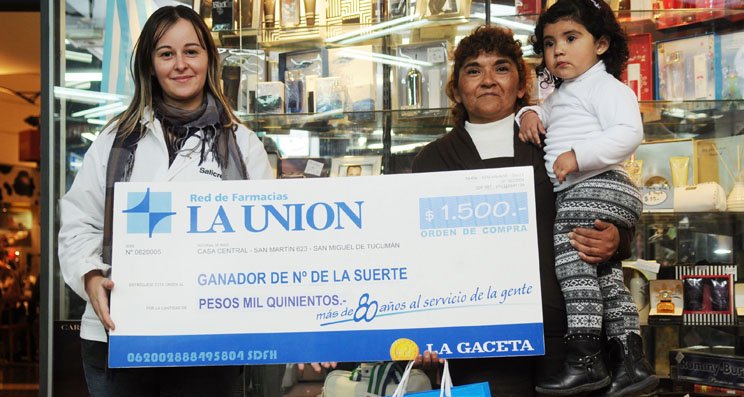 Nora Ester Medrano aprovechó la oportunidad y compró de todo: desde medicamentos hasta bolsos y pañales. Ella se convirtió en la ganadora de una orden de compra por $ 1.500 en farmacias La Unión con los Números de la Suerte de LA GACETA. "Fue una hermosa sorpresa, porque es la primera vez que gano un premio importante. Fui a canjearlo con mi nieta, Micaela (2 años); con mi hija, Ivana, y con su amiga Mary. Nos atendieron muy amablemente. Compré un bolso para mí y una ?planchita? para mi hija; pañales y leche para la bebé; algunos medicamentos recetados y otros para el botiquín de la casa, y artículos de perfumería", enumeró muy contenta.