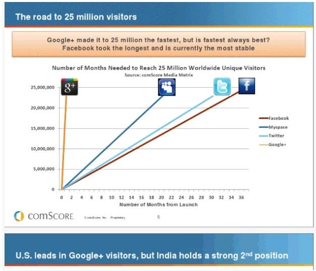 El cálculo fue realizado por la compañía ComScore y divulgado por el sitio especializado Masahable, quienes fueron cautos al advertir el gran crecimiento de la plataforma del megabuscador, con un éxito casi inpensado, teniendo en cuenta su más grande fracaso: Google Wave.